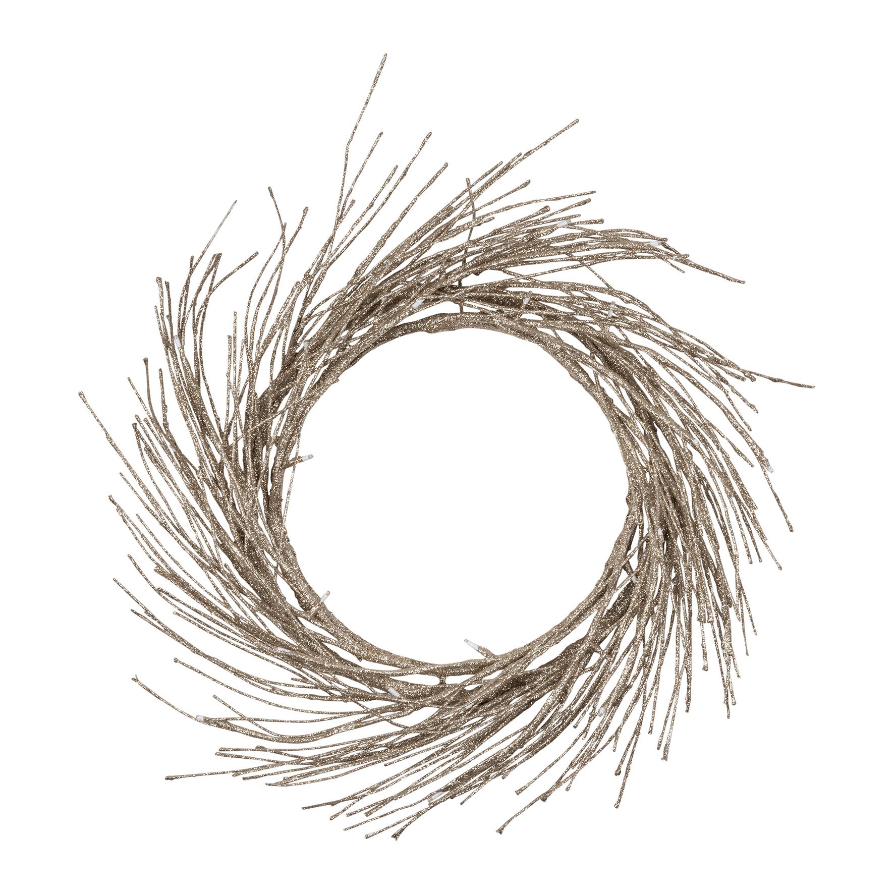 The Aurora Wreath emits a warm glow from 60 integrated LEDs, delicately wired through a champagne-toned metal frame. It’s an ethereal accent piece that adds ambient illumination and subtle glamour to interiors. Ideal for living rooms, dining areas, or as a luminous focal point in a modern décor scheme. Requires 3 AA batteries.