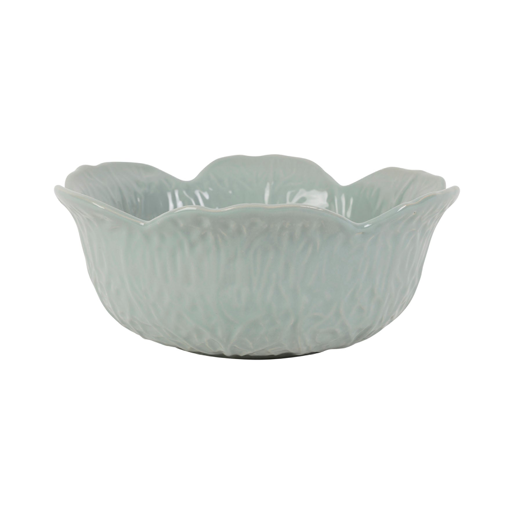 This charming small serving bowl is fashioned in glazed stoneware, meticulously molded to mimic the layered petals of a cabbage. It's ideal for serving crisp greens, pasta salad, or fruit. The green glaze gives the piece a natural, botanical elegance that feels both playful and refined.