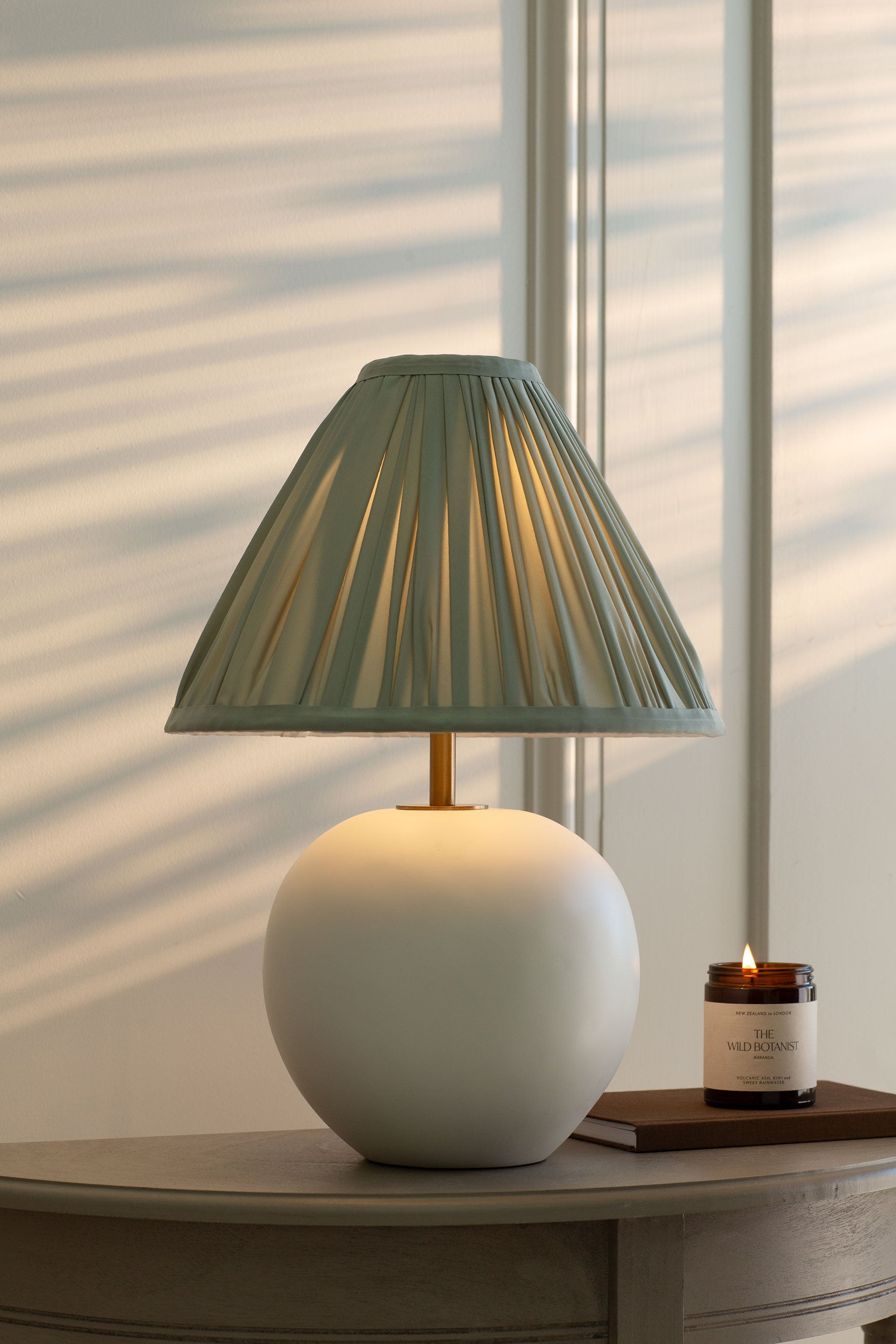 Trudy may be the most petite in the collection, but her presence is unmistakable. Its gathered fabric shade casts a diffused light, while the matte white base adds a sense of quiet refinement. Perfect for nightstands, bookshelves, or intimate alcoves, Trudy proves that small details can completely transform a room.